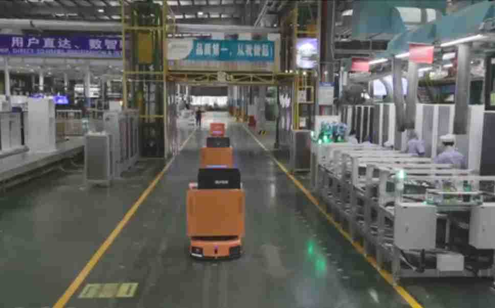 为车载冰箱物流配送打造的智能解决方案,,包含产中物流通过潜伏举升AMR搬运至线边,,,,产后成品物流智能仓储,,流程包含产中物流智能齐套入库,,,线边安灯叫料AMR智能配送至线边,,,成品入库、、、、出库,,,通过无人堆高车机器人,,,,智能仓储管理替代人工作业管理,,,,实现更高存储、、、、更高效率、、、更具柔性化的解决方案。。